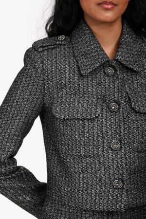 Self-Portrait Black/Metallic Bouclé Crystal Embellished Buttoned Jacket Size 2