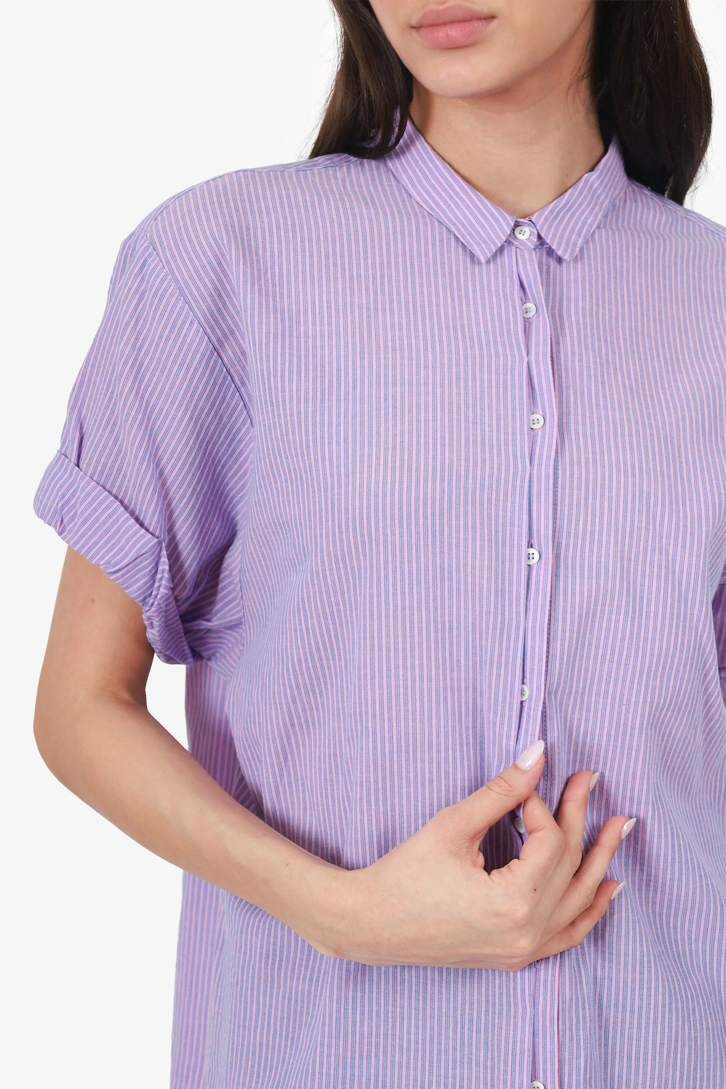 Xirena Purple Cotton Button Down Shirt. Collared neckline. Front button-up closure. Tonal stitching.